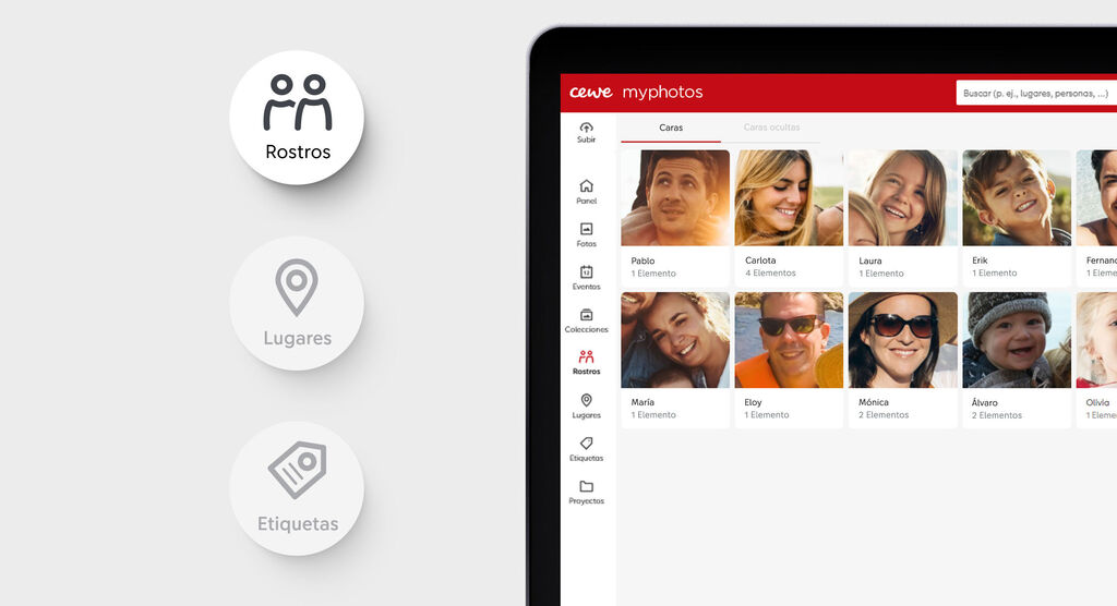 Organiza y encuentra rápidamente tus fotos gracias a las funciones «Personas», «Lugares» y «Objetos».