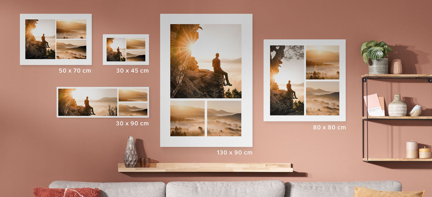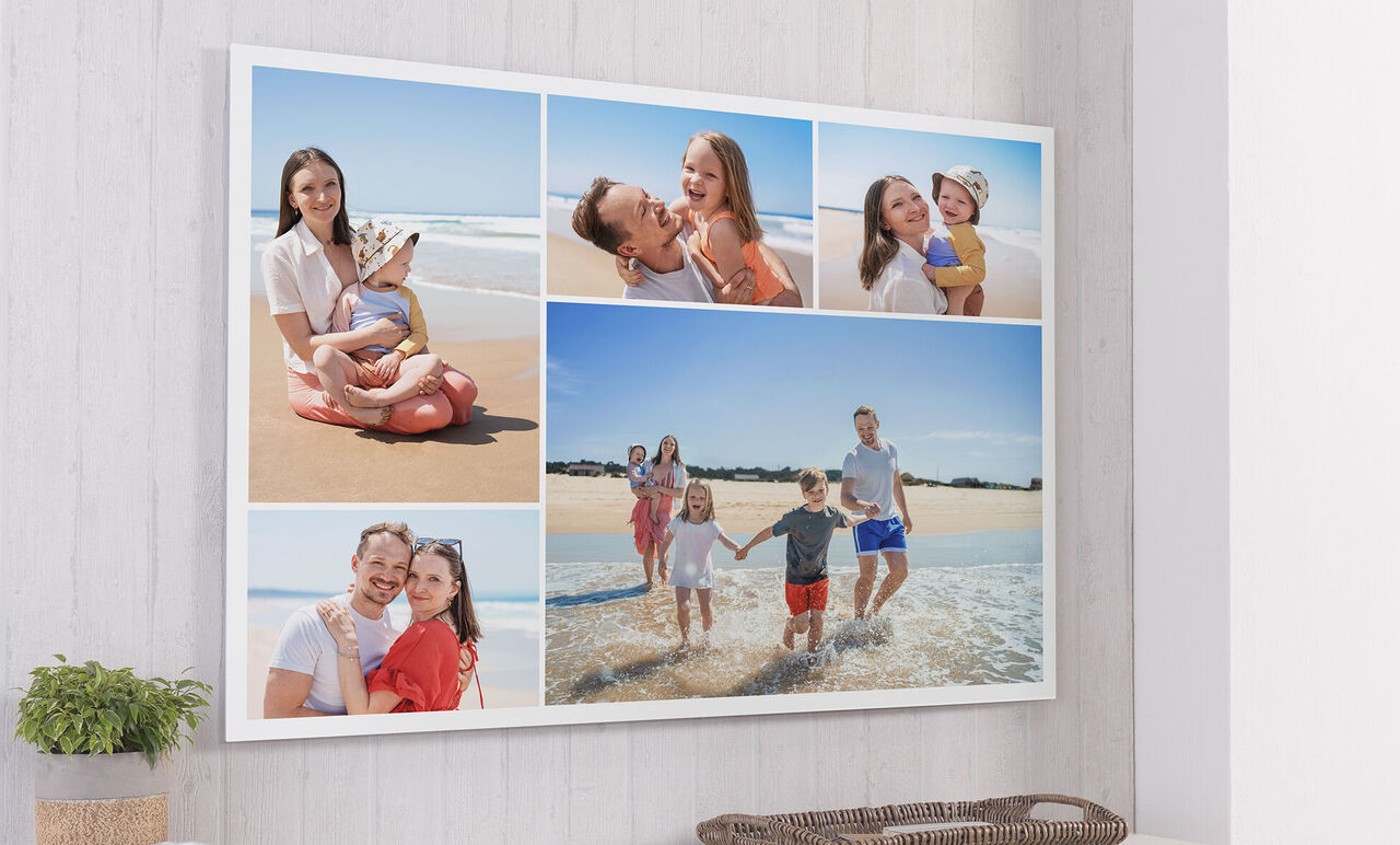 En un lienzo fotográfico collage, varias fotos se armonizan en una misma composición, lo que permite contar un momento importante (viaje, boda, vida familiar...) en un solo producto. El lienzo fotográfico clásico destaca una sola fotografía en formato pequeño o grande, ideal si deseas centrar la atención en una imagen para el recuerdo.
