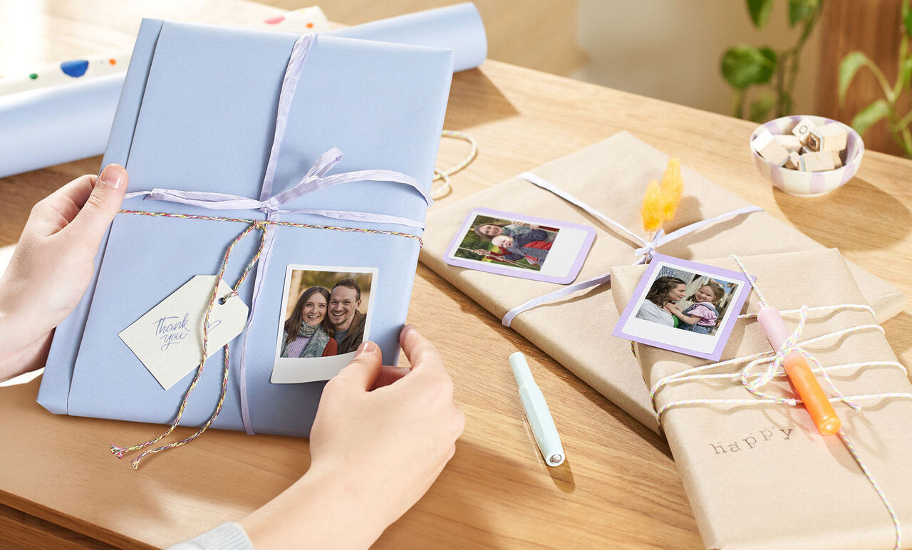 Gracias a las pegatinas de fotos, puedes decorar tus regalos con tus imágenes favoritas