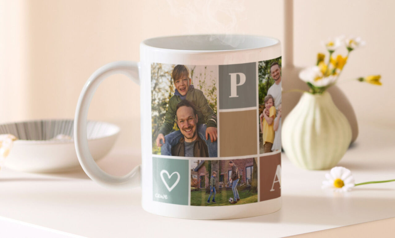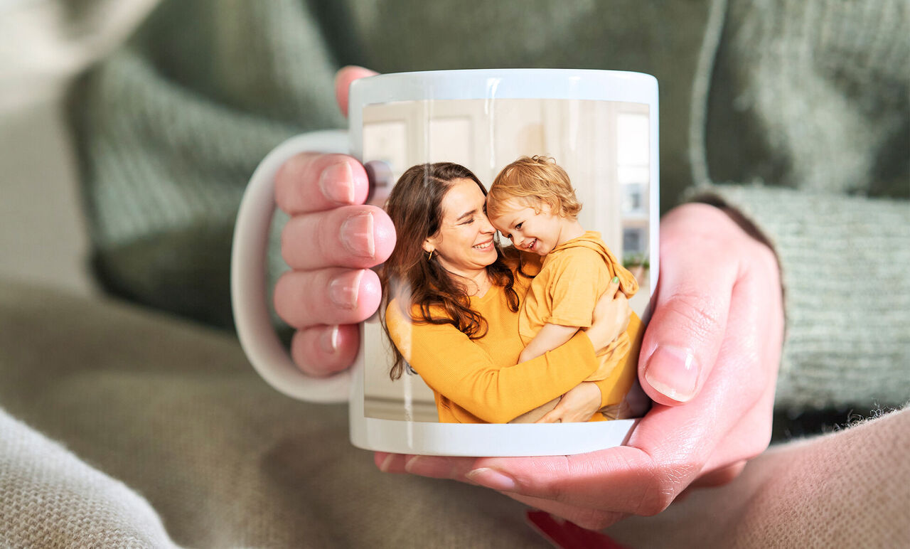¡Nuestro editor en línea te guía paso a paso para crear una taza personalizada con tus propias fotos y textos que se adapte a tu estilo, y que se vea perfectamente cuando la sostengas con la mano izquierda!